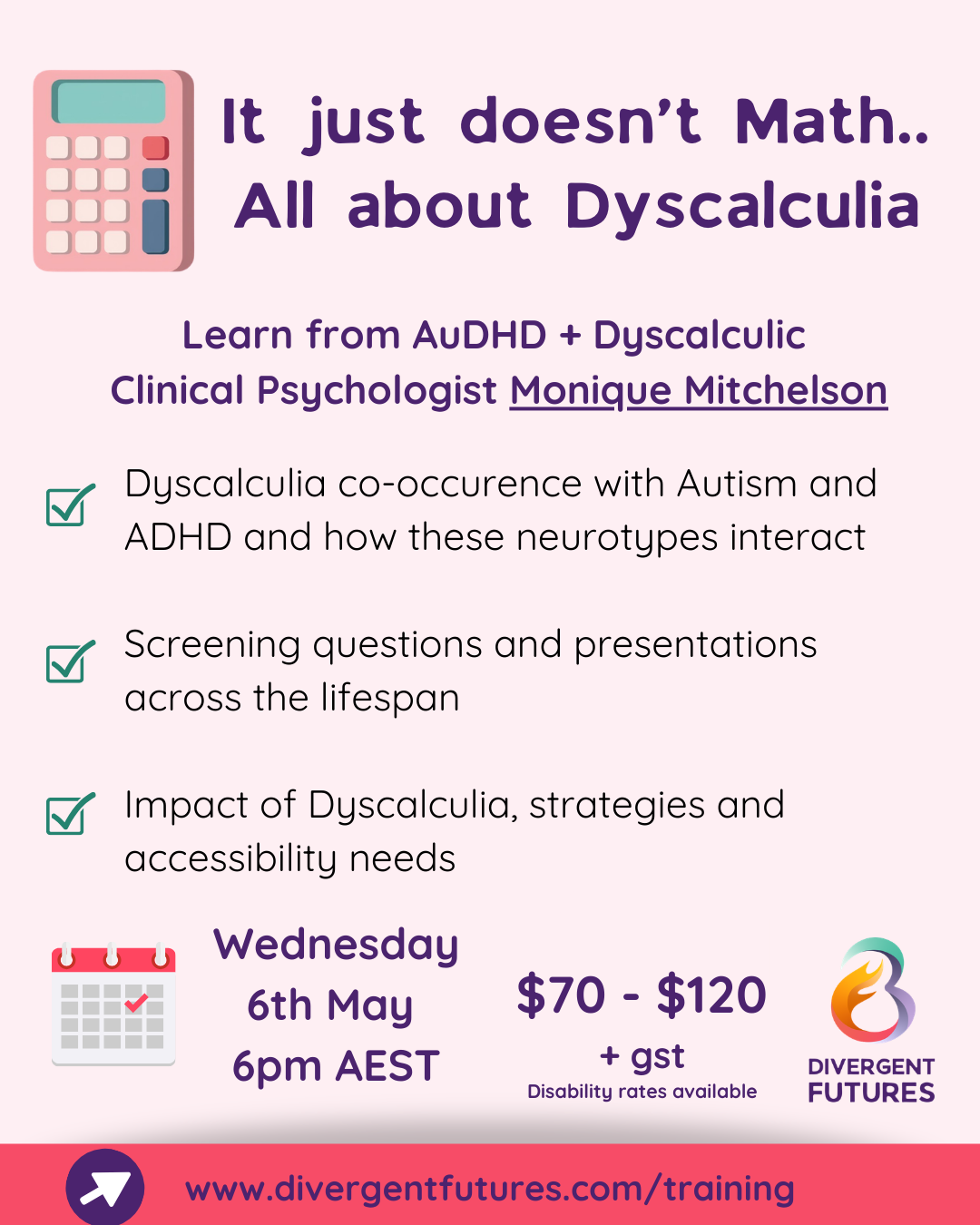In this live 1.5 -hour webinar, AuDHD and Dyscalculic Clinical Psychologist Monique Mitchelson unpacks the often forgotten learning difference Dyscalculia.